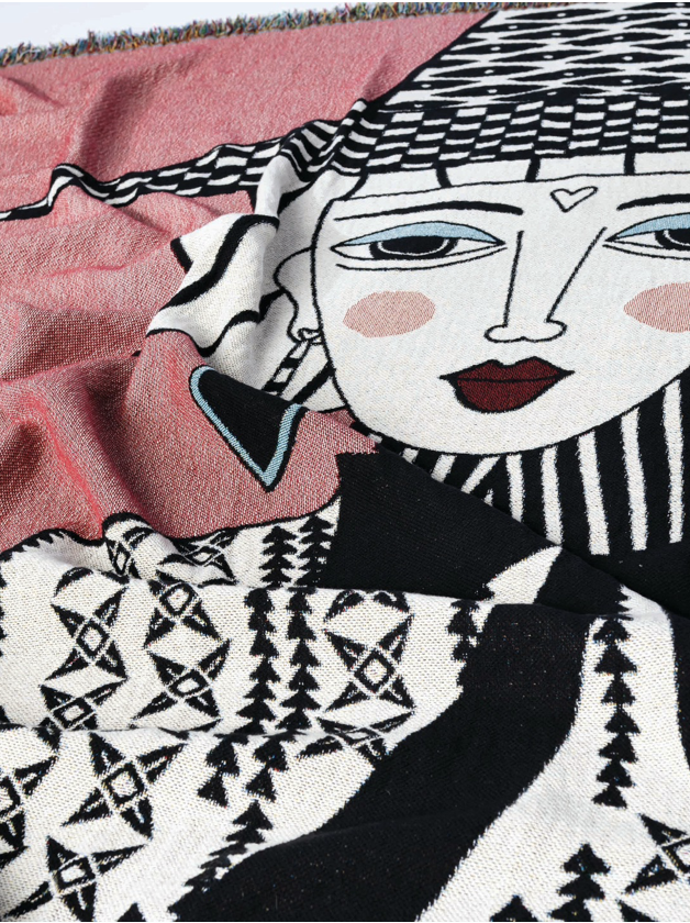 These large woven blankets are true statement pieces. Designed by Hannah Davies, each pattern is intricately woven (not printed) into a 100% cotton blanket, using 50% recycled materials.