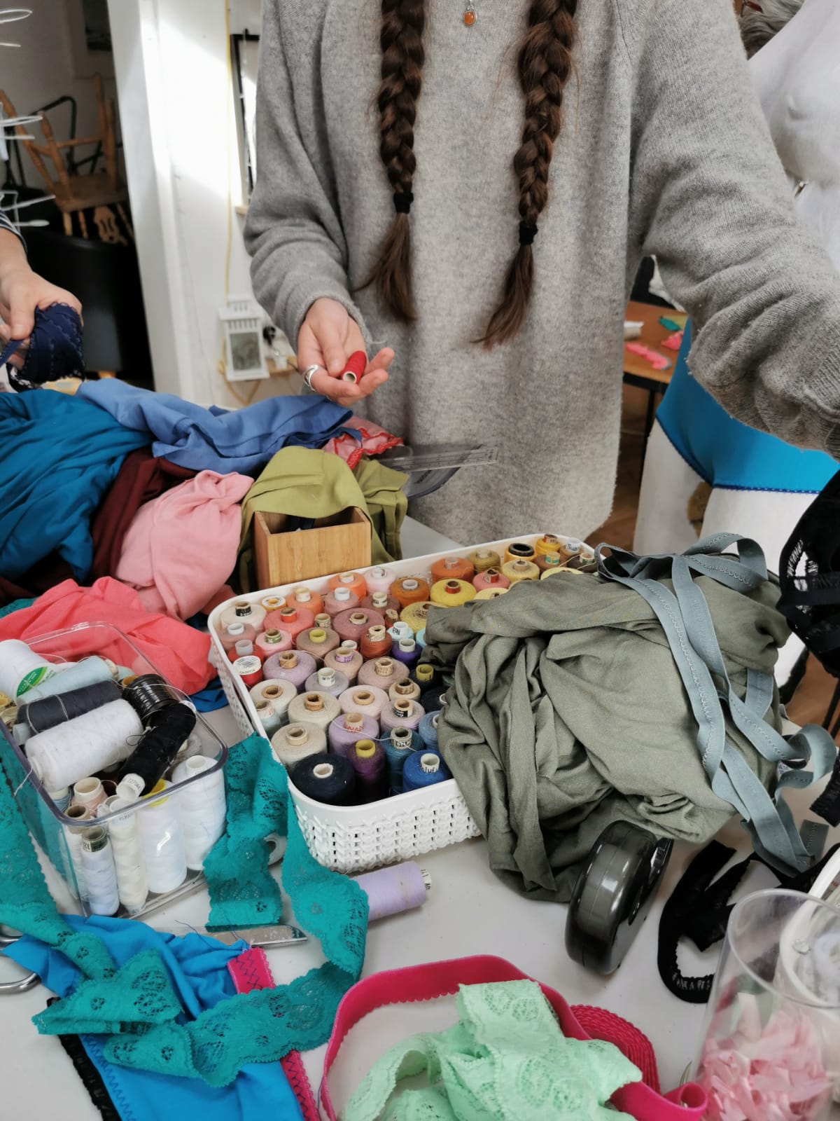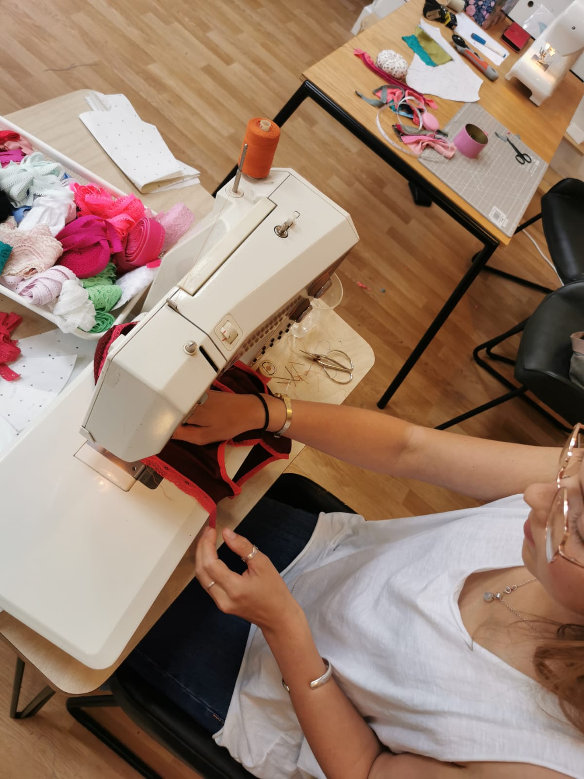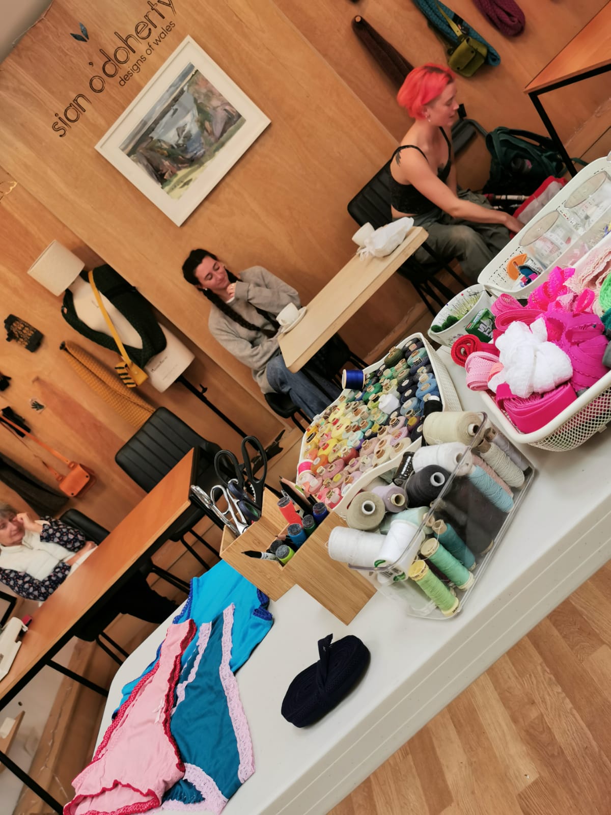 I had such a great day at Emily’s workshop! We enjoyed a beautiful creative space, with a friendly atmosphere and warm encouraging environment. I have used sewing machines before for one-off projects, but Emily’s thorough explanation of each stage ensured that everyone knew what they were doing. It was very fun and we learnt a lot about different types of lace and how to use them, thanks to Emily’s extensive knowledge. The lunch served by Sian was delicious. You’ll never buy knickers again!