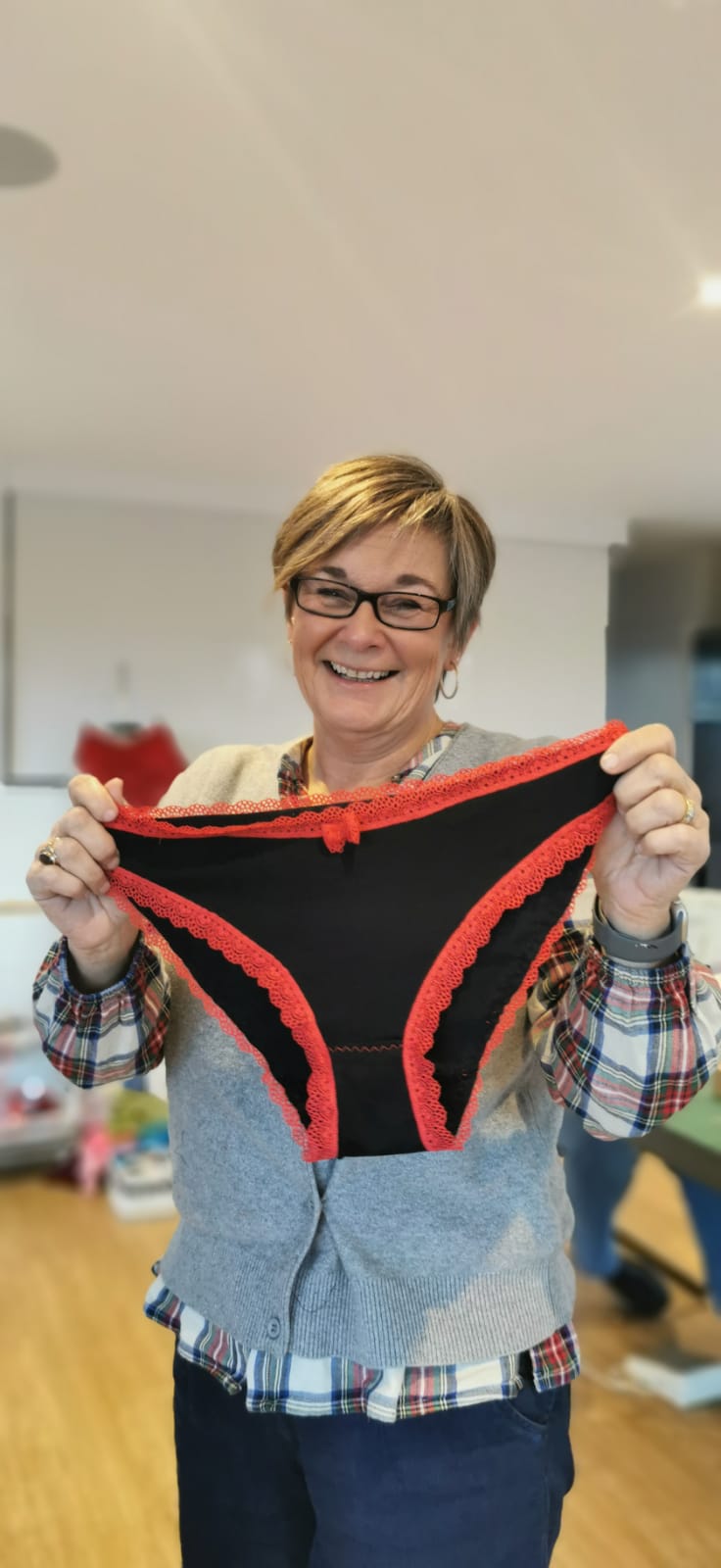 What a great day! So much fun and came away with a really comfortable pair of pants!! The fabric Emily provided is so soft and a full range of beautiful laces to choose from to provide contrast and finish them beautifully. Emily taught us so well and provided us with the pattern to take home so I’m all prepared to make some more!! Thank you Emily.