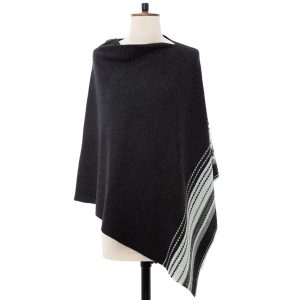 With its vivid, graphic border, this luxurious poncho combines the elegance of a wrap with the easy wear-ability of a garment. A comfortable and stylish alternative to a coat on brisk days or cool evenings, it’s eye-catching design is matched only by its comfort. Knit up as a double bed fabric, it has a beautiful drape that will not curl at the edges. The resulting fabric is warm and sumptuous.