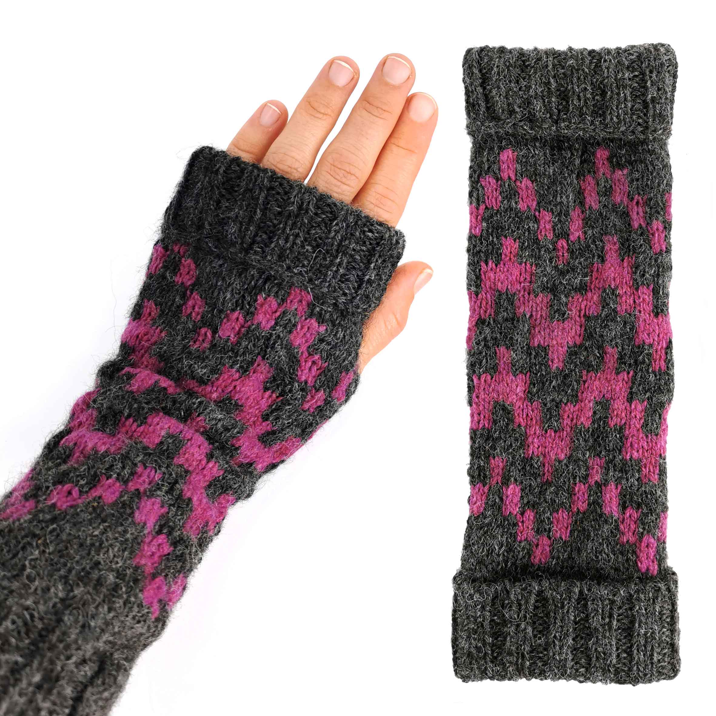 Featured is the charcoal alpaca Rheydr yarn with accent pink trim.