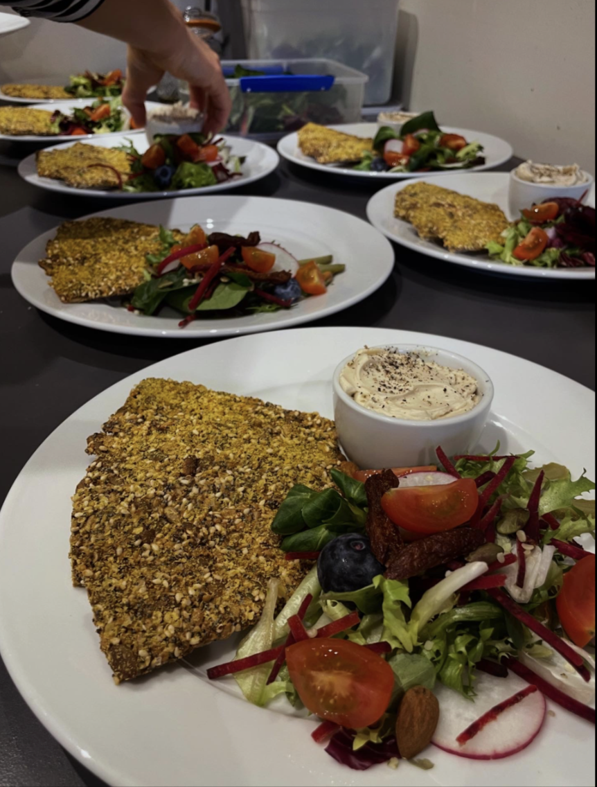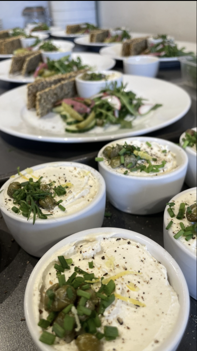 After the class, you’re invited to stay and enjoy a light, nourishing brunch. You’ll be served homemade seed crackers with our cashew cream cheese, alongside a fresh side salad and pickled red onion, with a self-serve herbal tea station to finish. Thoughtful, simple food designed to leave you feeling refreshed rather than heavy.