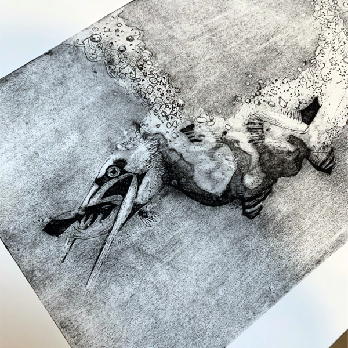 • How to manipulate the plate (mount board) with different tools and techniques to achieve tonal variation with contrasting linear ark making.